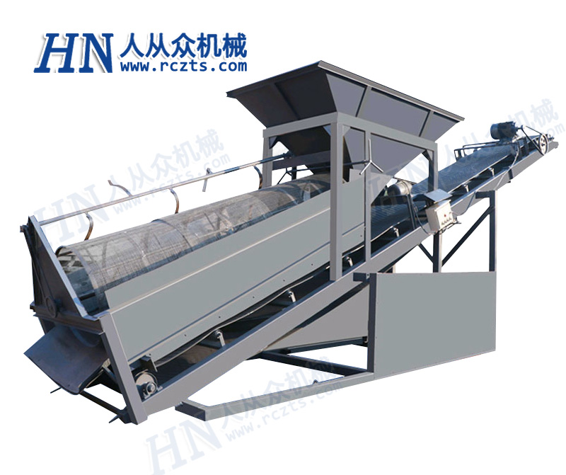 大型礦用滾筒篩與地面整體呈一定夾角的傾斜狀態。篩分滾筒以一定速度旋轉,物料通過篩分滾筒根據不同顆粒大小從上到下分離。滾筒篩的滾筒一般分為幾個部分,可根據具體情況確定。篩孔從小到大排列,每段篩孔直徑相同。