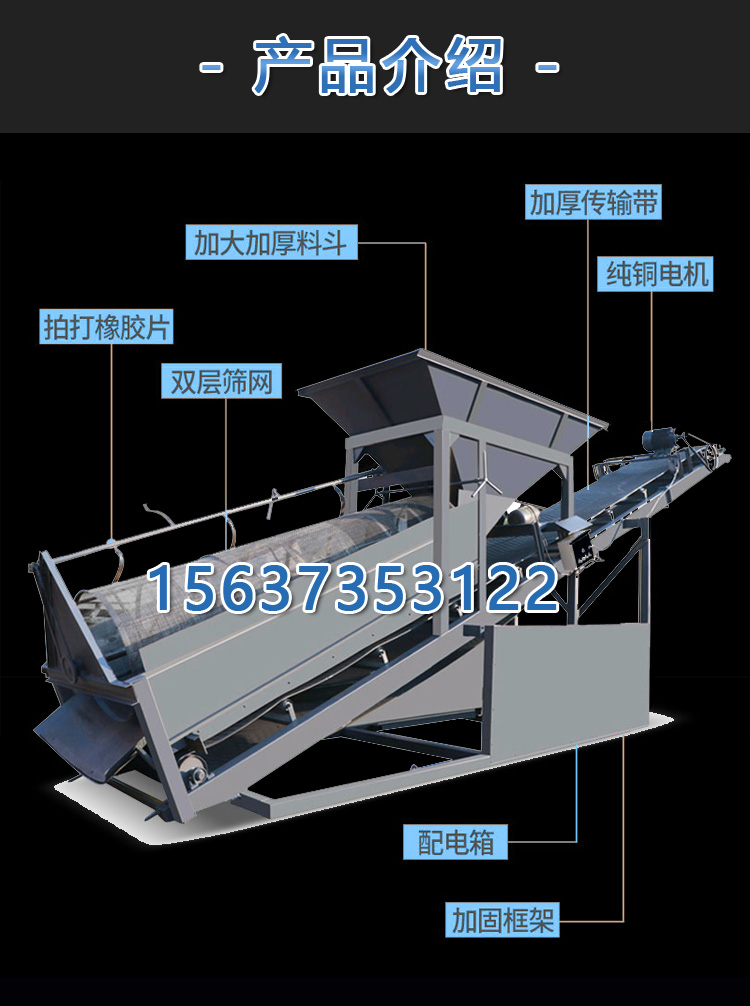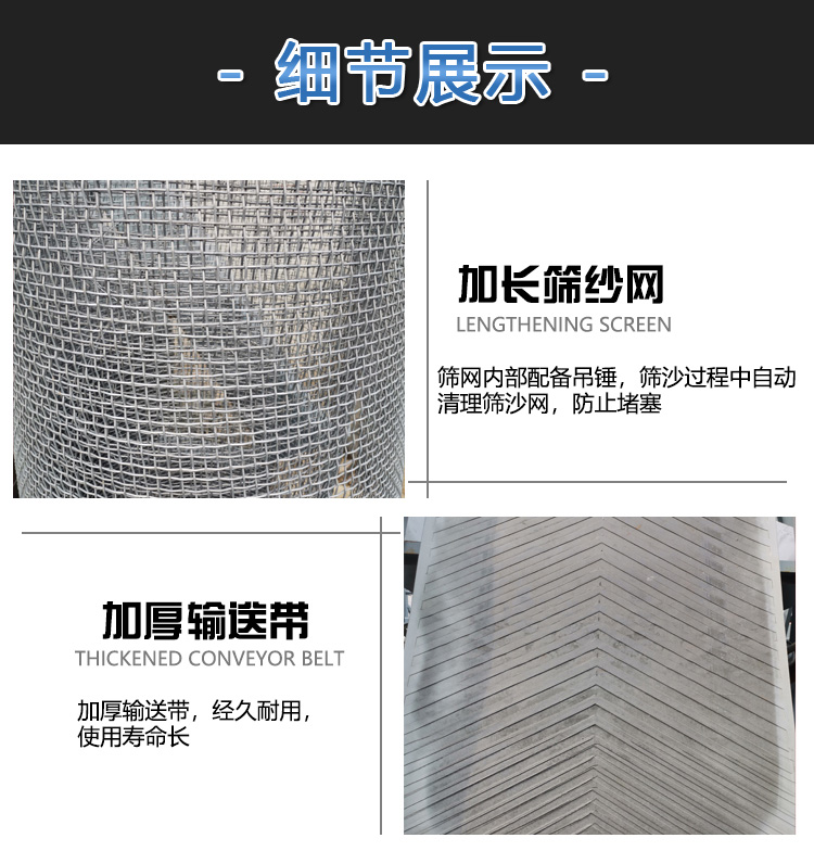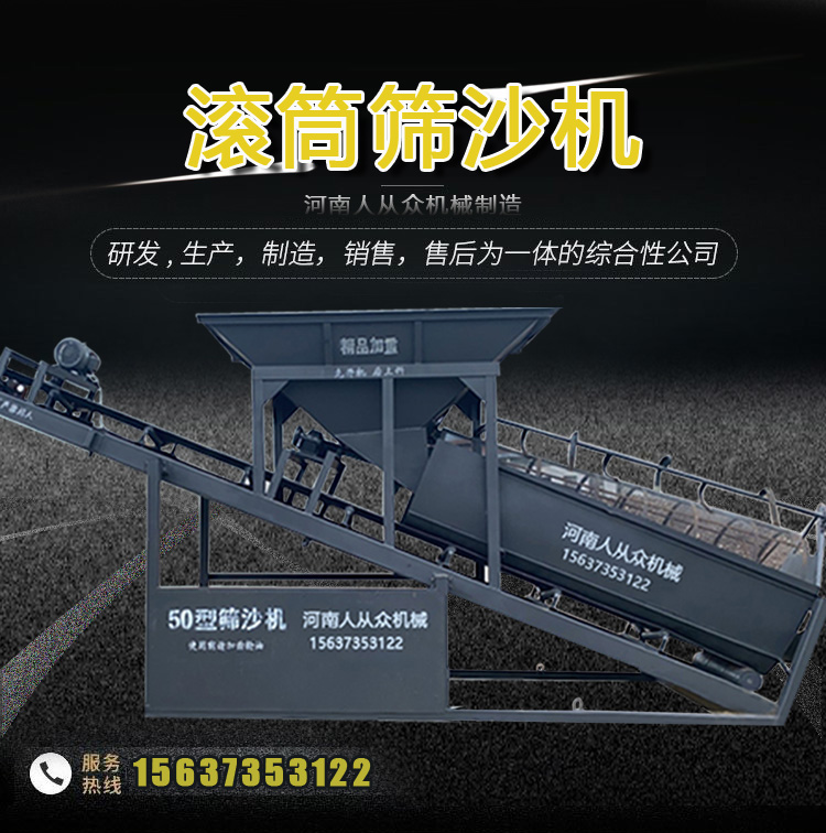 大型滾筒篩沙機(jī)模仿了人工使用斜篩篩砂的情況,整體與地平面處于一定夾角的傾斜狀態(tài),保證篩筒內(nèi)物料流可以連續(xù)滾動(dòng)多次循環(huán),通過反復(fù)滾動(dòng)滑動(dòng),使砂料充分分散和分離。