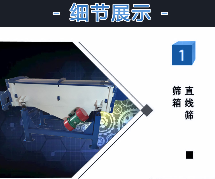 直線振動篩迫使物料在篩網上被拋起向前做拋物線運動,以不同的篩網過濾達到篩分目的。具有高產低耗、自動卸料等特點,適合流水線作業。